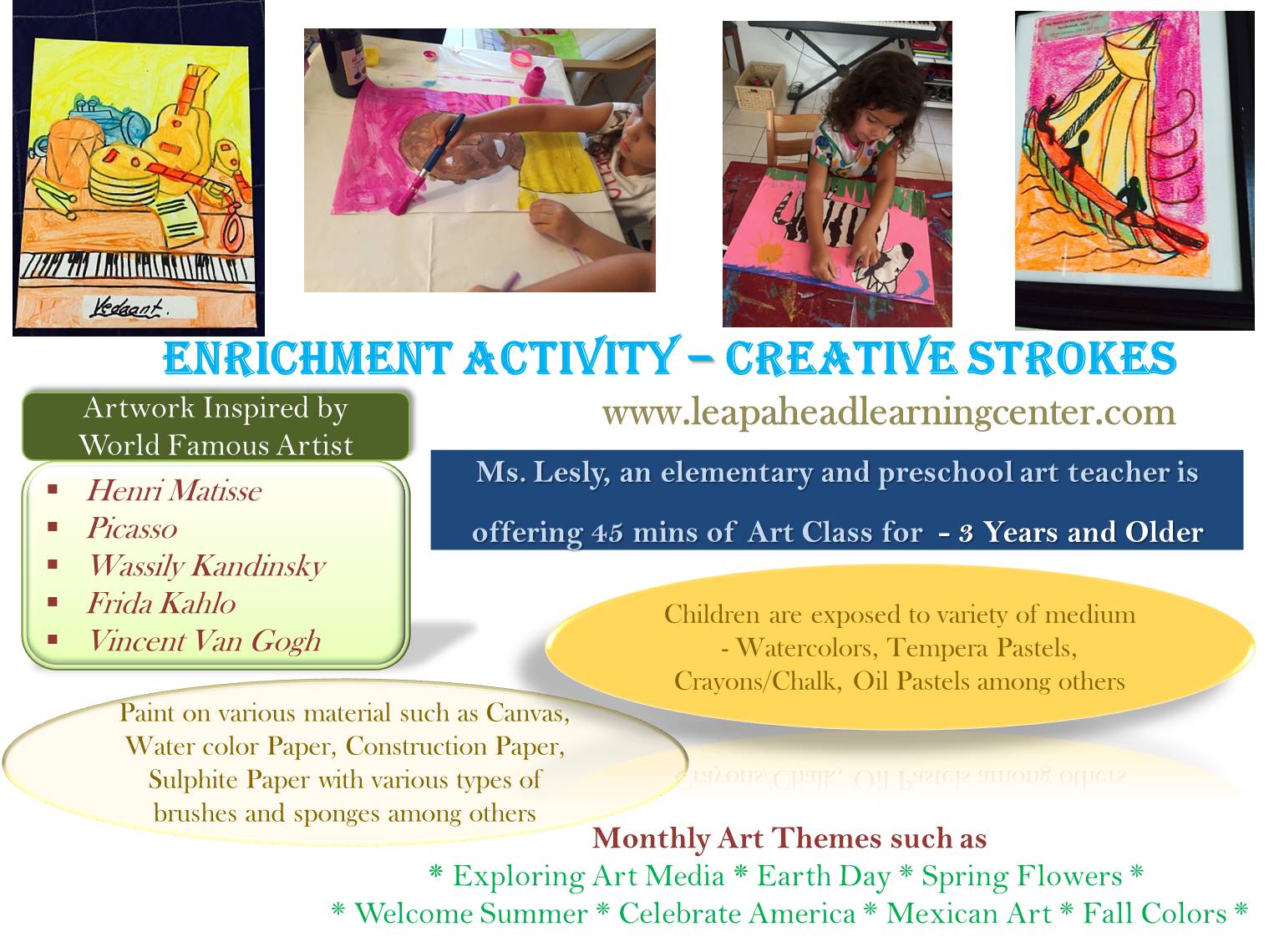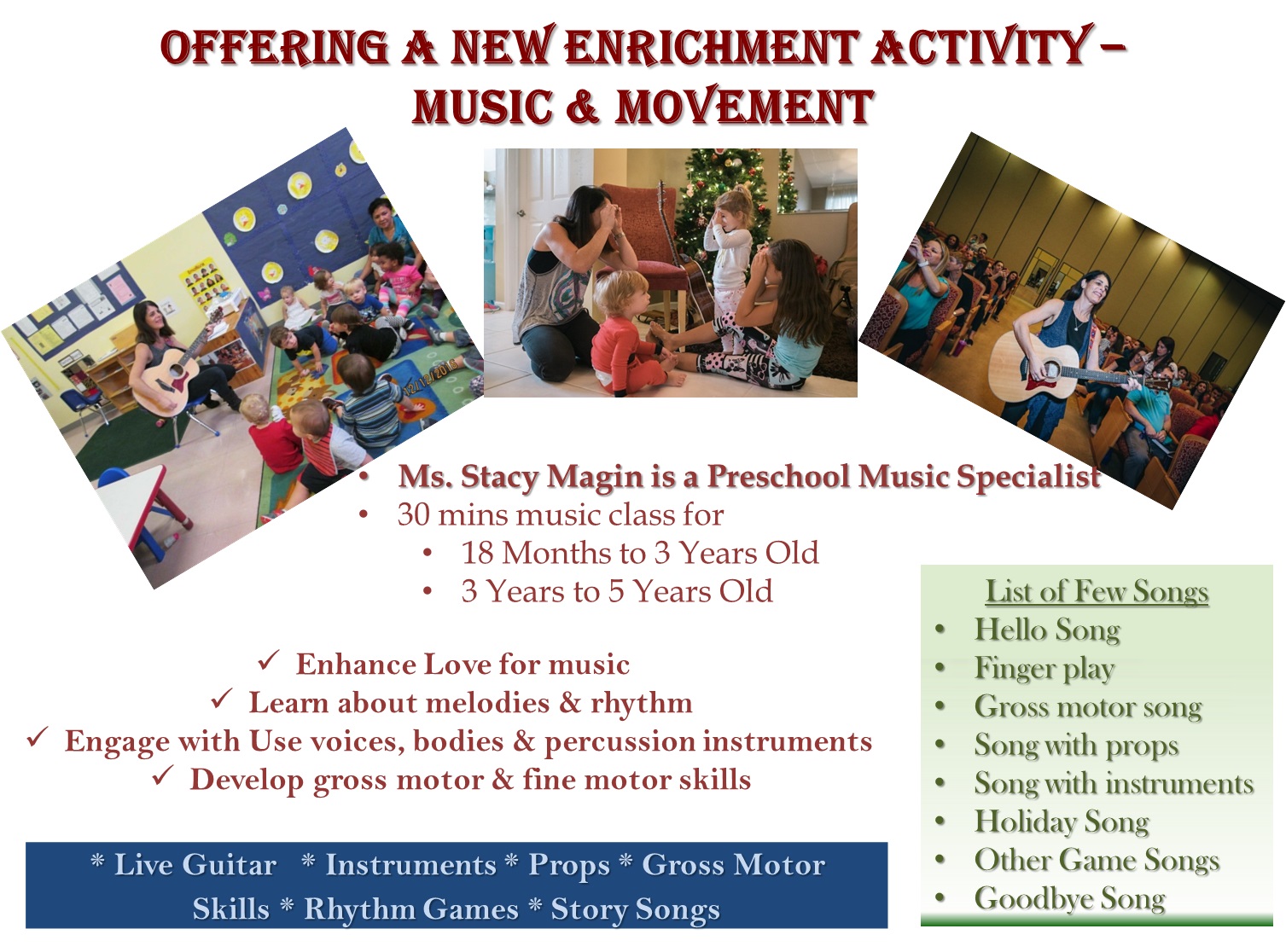 Our school offers an array of enrichment classes (optional) for the parents to enroll their children for an additional cost. Currently, we are offering the following enrichment classes: